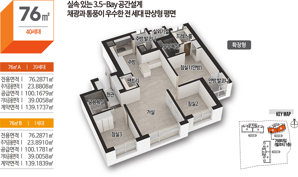 3.5 베이 맞통풍 판상형에 넓은 주방,