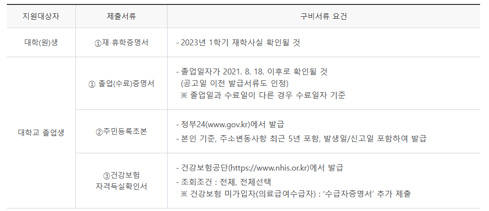 - 지원금액은 2016년 이후 한국장학재단 학자금 대출에 대한 '22년 7월 ~ '23년 6월까지 발생이자 1년분이며